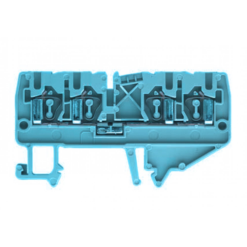 Проходная клемма, 4 точки подключения, тип фиксации провода: пружинный, номинальное сечение: 2,5 мм кв., 24А, 800V, ширина: 5 мм, цвет: синий, тип монтажа: DIN35
