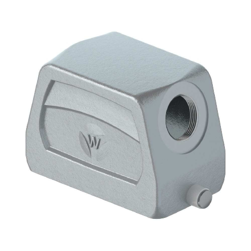 Крышка разъема 70.350.0628.1, Крышка разъема на кабель, типоразмер 6B, без уплотнителя, 1 отверстие с резьбой для кабельных вводов PG13,5, с боковым расположением, без защелки (упоры под одну защелку), материал корпуса: алюминиевый сплав