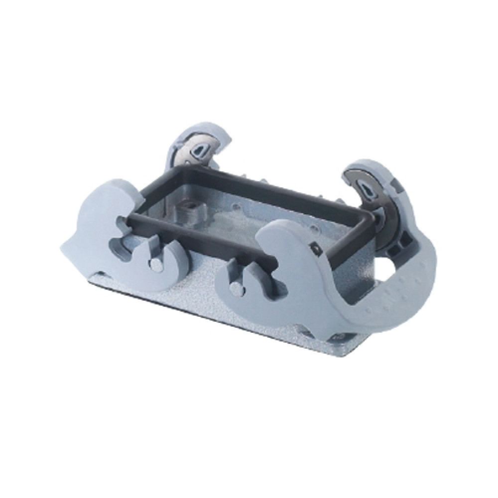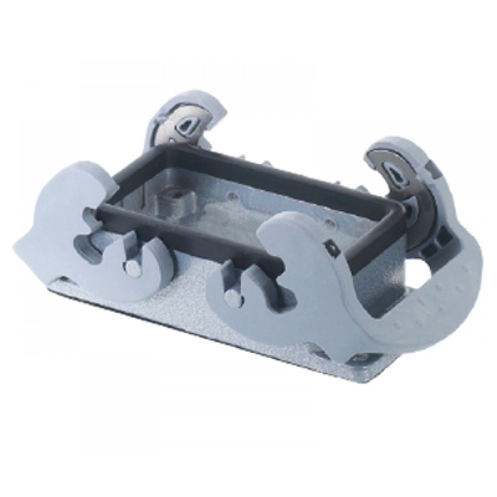 Основание разъема на панель, открытое, типоразмер 10B, с уплотнителем, с двумя металлическими защелками, без защитной крышки, материал корпуса: алюминиевый сплав