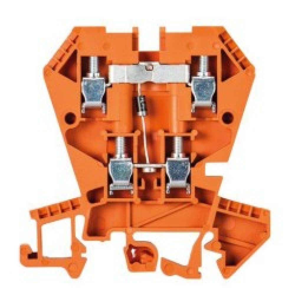 Этажная функциональная клемма, 2 этажа, тип фиксации провода: винтовой, номинальное сечение: 4 мм кв., 1A, 1000V, ширина: 6 мм, цвет: оранжевый, тип монтажа: DIN35