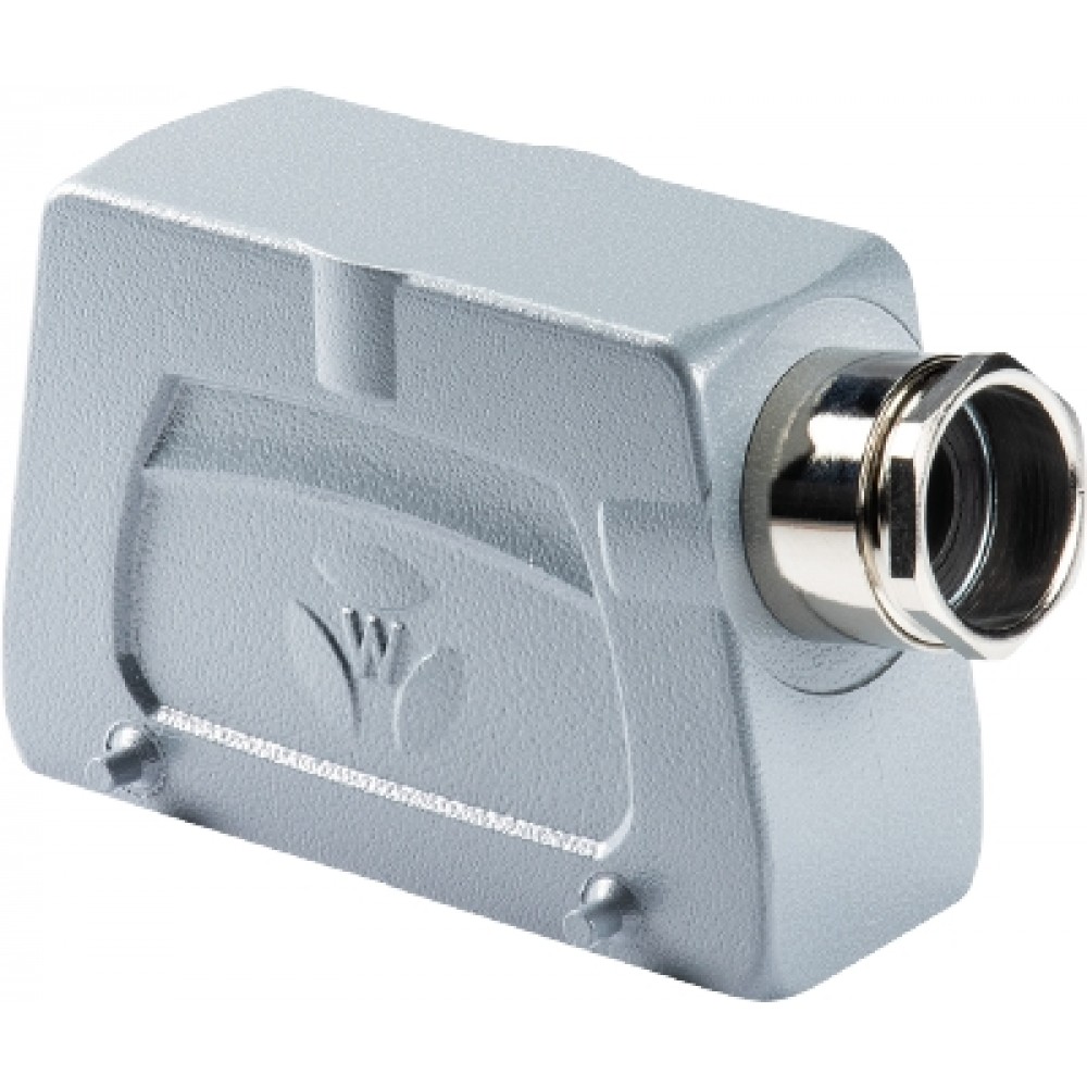 Крышка разъема на кабель, типоразмер 24B, высокое исполнение, без уплотнителя, 1 отверстие с резьбой для кабельных вводов PG29, с боковым расположением, без защелок (упоры для двух защелок), материал корпуса: алюминиевый сплав