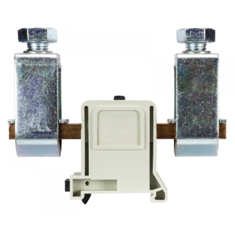 Доставка Болтовая клемма RFK 1/240 K S35 , Болтовая клемма, М12, схема: зажим - зажим, тип фиксации провода: зажим-зажим, номинальное сечение: 240 мм кв., 415A, 1000V, ширина: 42 мм, цвет: серый, тип монтажа: DIN35