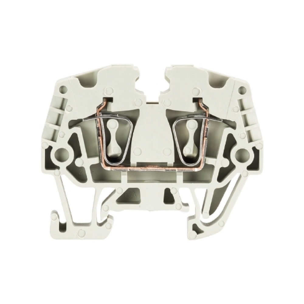 Проходная клемма, MINI, верхний подвод кабеля, 2 точки подключения, тип фиксации провода: пружинный, номинальное сечение: 2,5 мм кв., 24A, 1000V, ширина: 5 мм, цвет: серый, тип монтажа: DIN15