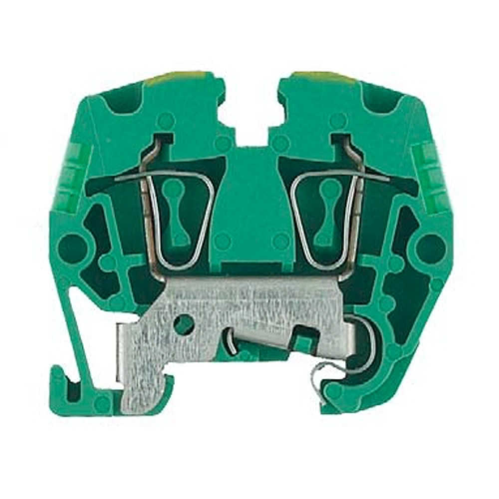 Заземляющая клемма, MINI, верхний подвод кабеля, 2 точки подключения, тип фиксации провода: пружинный, номинальное сечение: 2,5 мм кв., 500V, ширина: 5 мм, цвет: желто-зеленый, тип монтажа: DIN15
