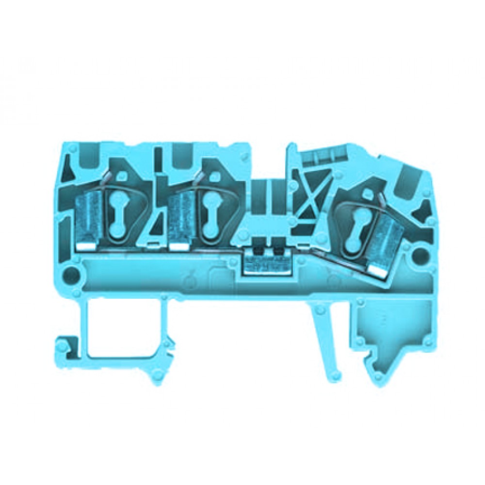 Проходная клемма, 3 точки подключения, тип фиксации провода: пружинный, номинальное сечение: 4 мм кв., 32A, 1000V, ширина: 6 мм, цвет: синий, тип монтажа: DIN35