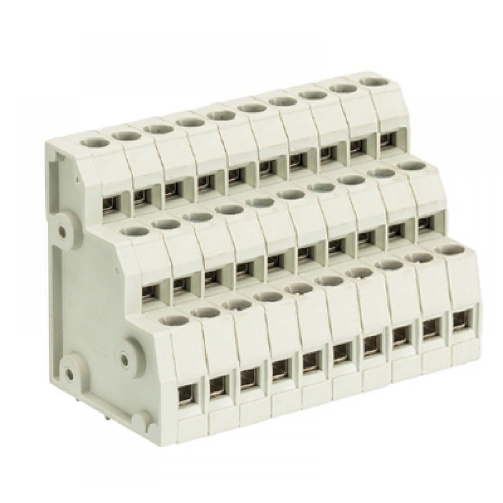 Клемма Wiecon 8195 D/ 10/ 30 OB, Клемма, 3 этажа, горизонтальный подвод кабеля, на плату, шаг: 5.0 мм, 30 полюсов, фиксация провода винтовая, исполнение: без маркировки, 300V, 10A, цвет: серый