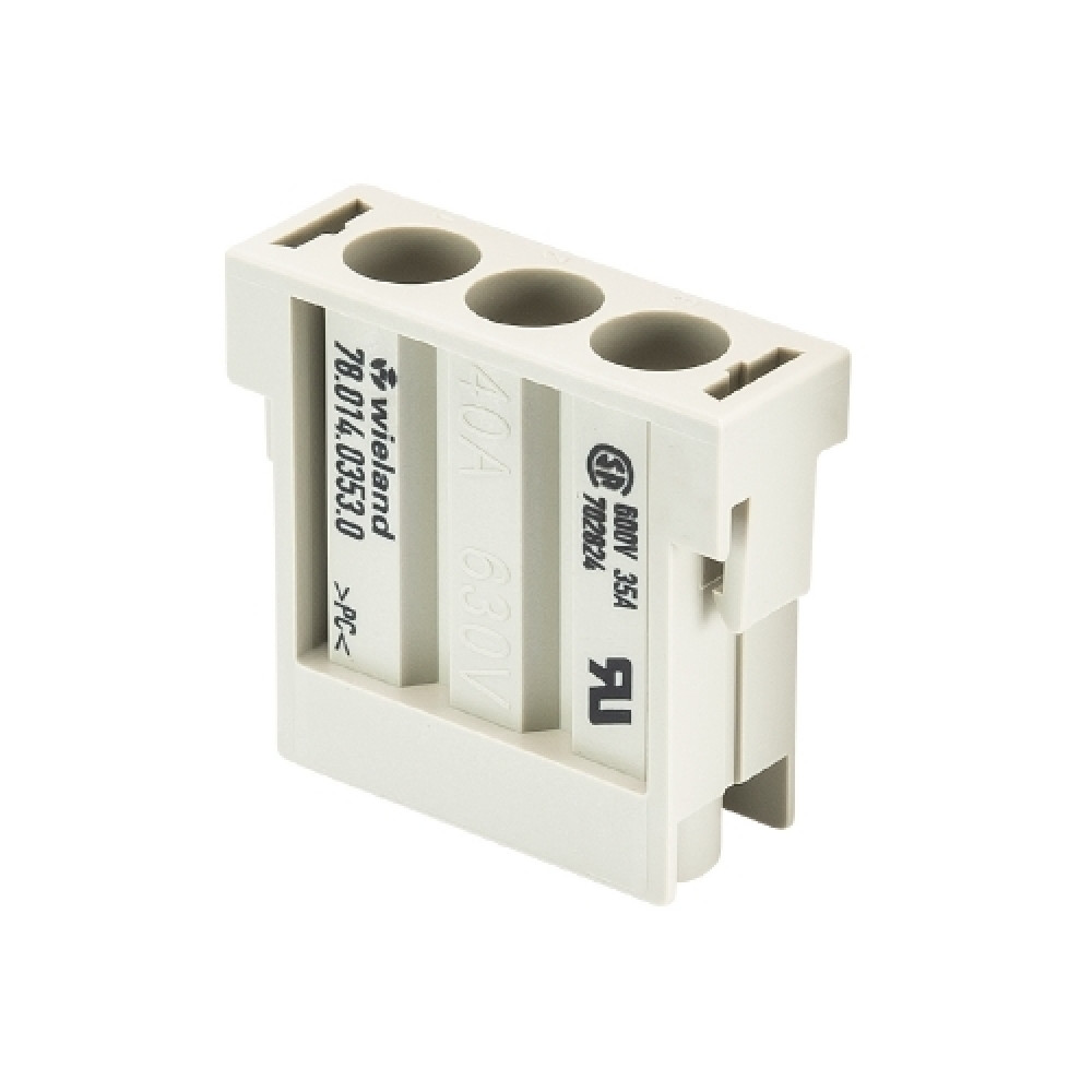 Вилочная контактная вставка, обжимная фиксация, 3 полюса, типоразмер FLEX, 630V, 40A, (обжимные контакты поставляются отдельно)