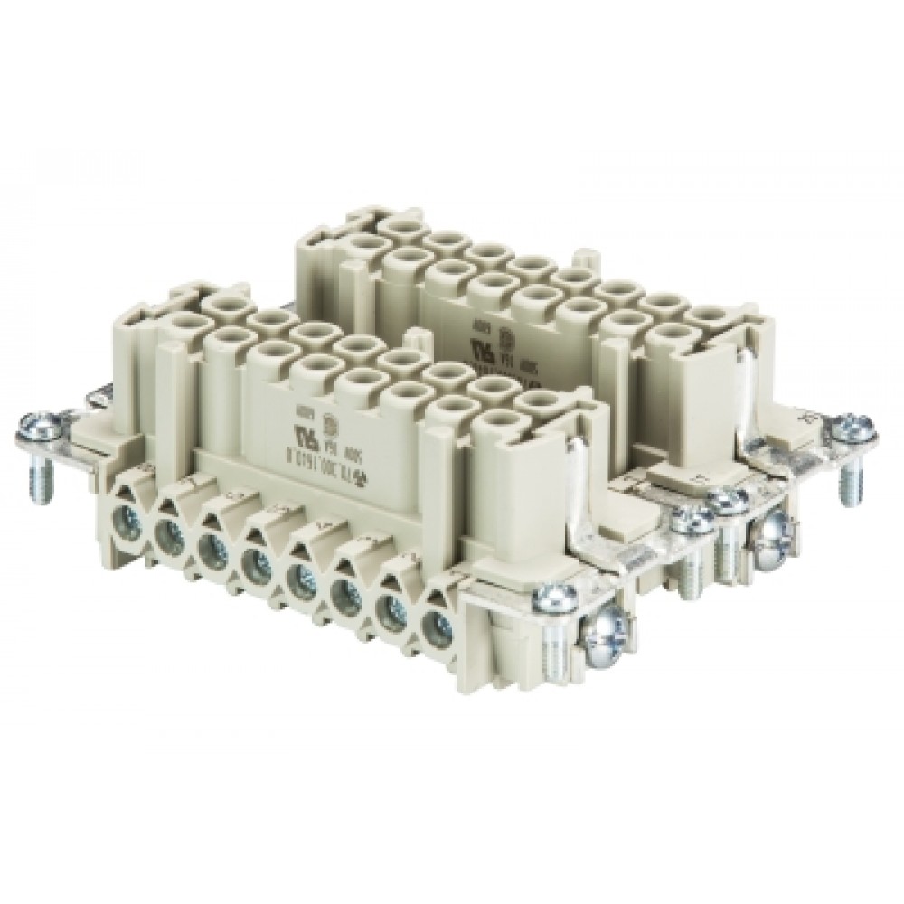 Розеточная контактная вставка, винтовая фиксация, 32 полюса + PE, типоразмер 32B, 690V, 16A, сечение обслуживаемых проводников 0,5-2,5 мм кв, тип покрытия контактов: олово