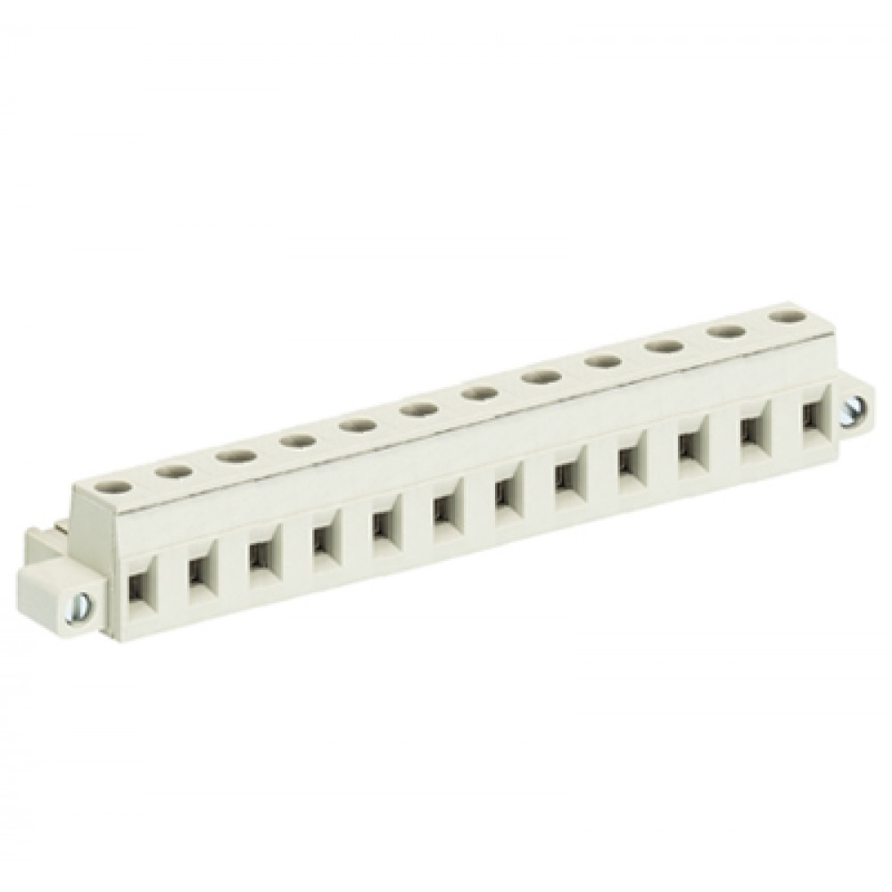Розетка Wiecon 8313 B / 12 F, Розеточный разъем, угловой, на кабель, шаг: 7.5 мм, 12 полюсов, фиксация провода винтовая, исполнение: с монтажными фланцами, с маркировкой, 400V, 12А, цвет: серый
