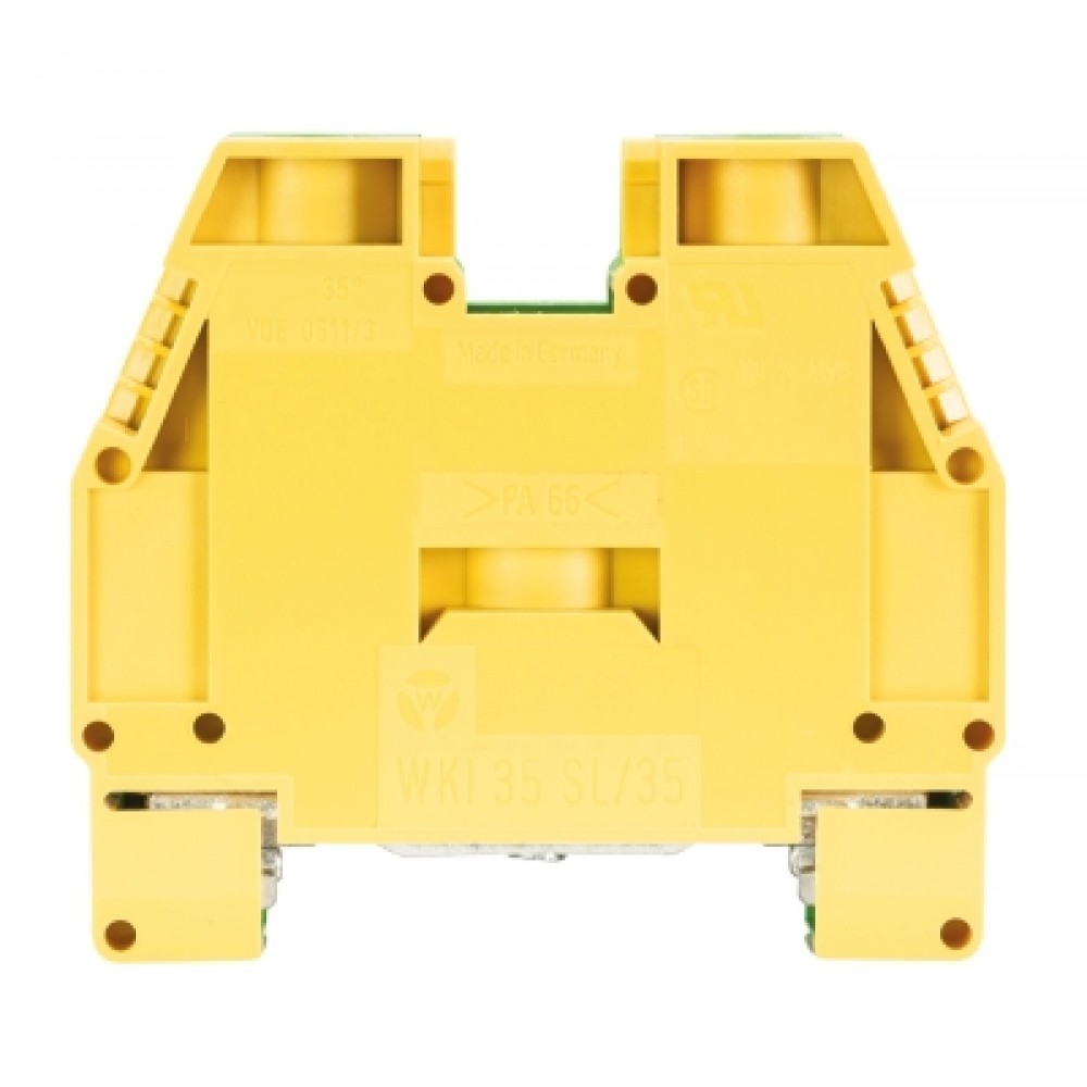 Заземляющая клемма WKI 35 SL35, Заземляющая клемма, тип фиксации провода: винтовой, номинальное сечение: 35 мм кв., 125A, 400V, ширина: 16 мм, цвет: желто-зеленый, тип монтажа: DIN35