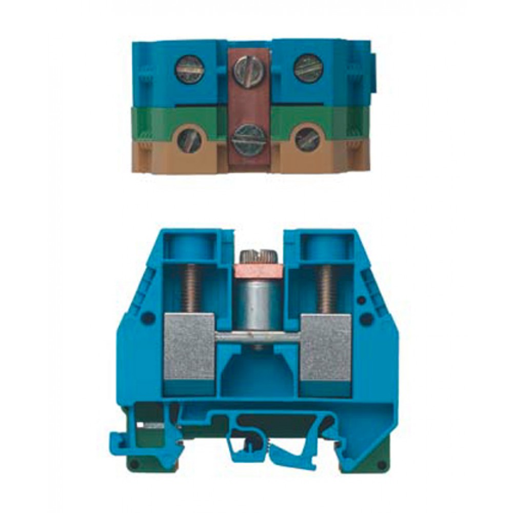 Клеммная сборка WKI 35 PEN/35, Клеммная сборка из 2 клемм: WKI 35 PE, WKI 35 N, тип фиксации провода: винтовой, номинальное сечение: 35 мм кв., 125A, 800V, цвет: синий/желто-зеленый, тип монтажа: DIN35