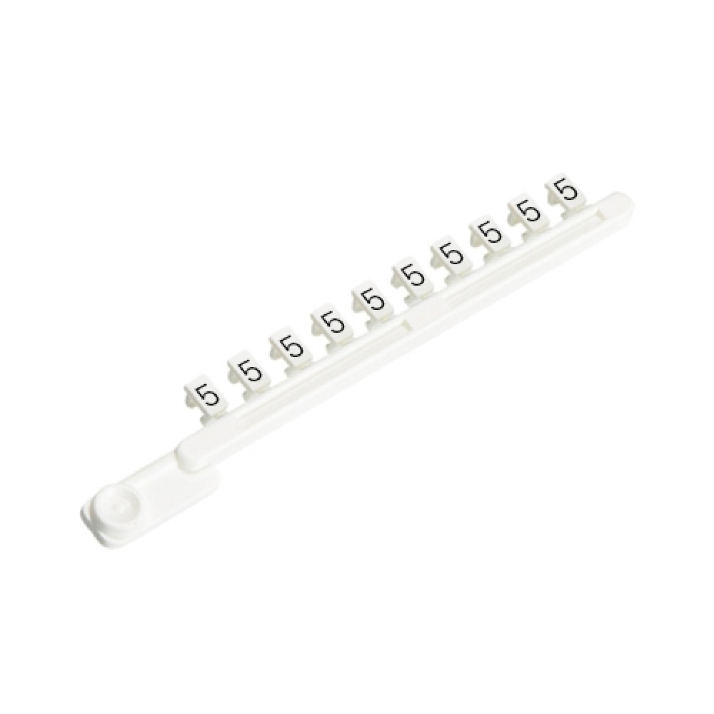 Гребенка с шильдиками 9704 A/5 B, Гребенка составных шильдиков, боковая / верхняя, 10 шильдиков, нанесенные символы: 5,5, ... ,5 цвет: белый