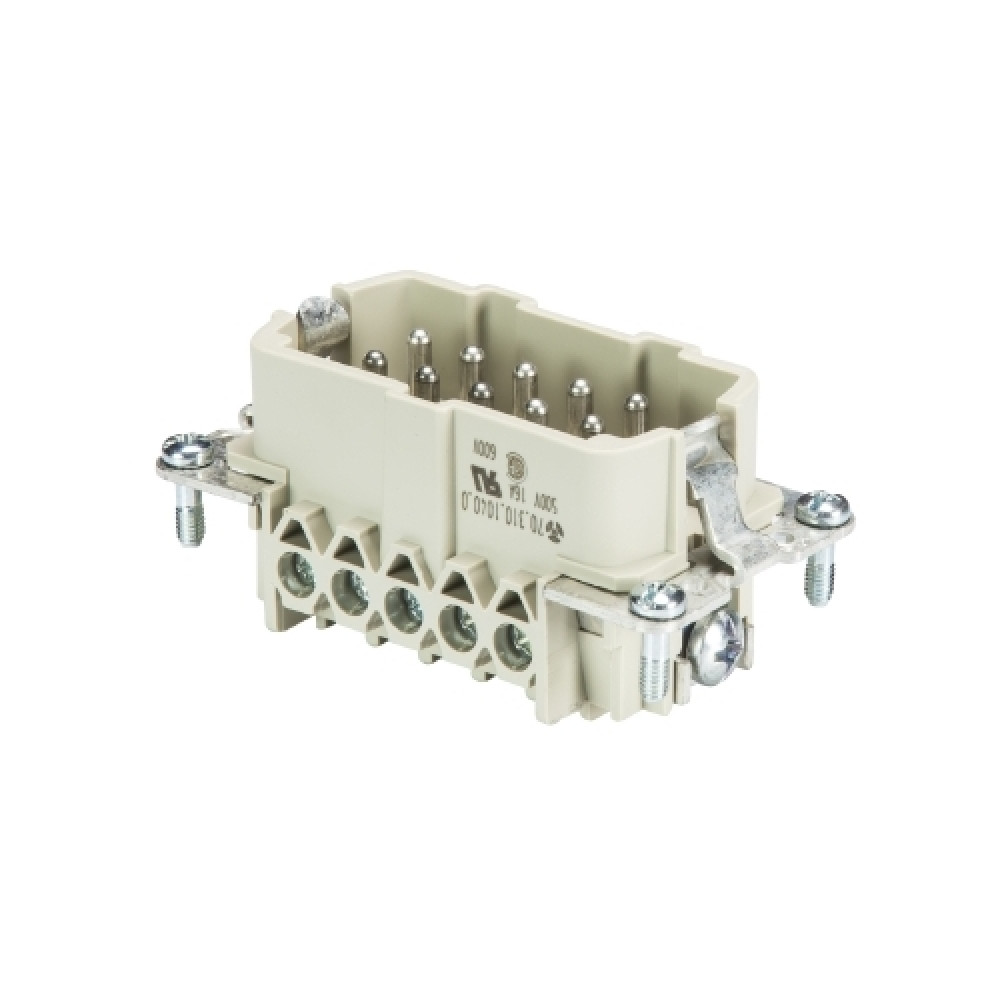 Вилочная контактная вставка, винтовая фиксация, 10 полюсов + PE, типоразмер 10B, 690V, 16A, сечение обслуживаемых проводников 0,5-2,5 мм кв, тип покрытия контактов: олово