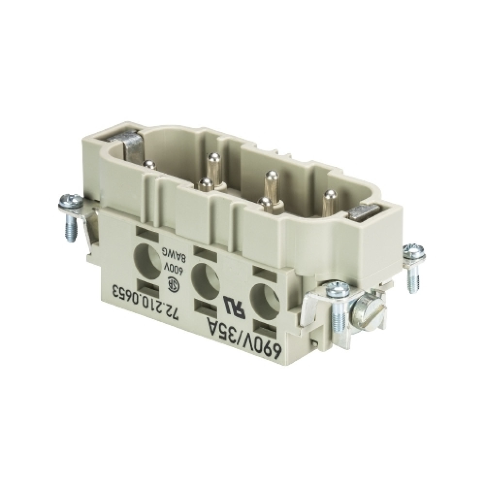 Вилочная контактная вставка, винтовая фиксация, 6 полюсов + PE, типоразмер 16B, 690V, 35A, сечение обслуживаемых проводников 2,5-6 мм кв, тип покрытия контактов: серебро