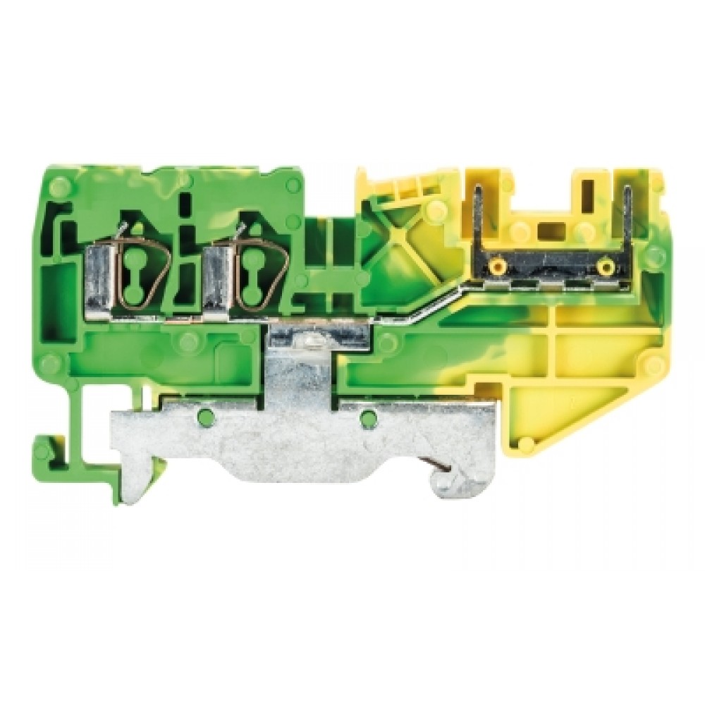 Заземляющая клемма, для подключения разъема, тип фиксации провода: пружинный, номинальное сечение: 2,5 мм кв., 250V, ширина: 5 мм, цвет: желто-зеленый, тип монтажа: DIN35