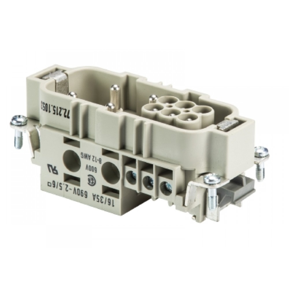 Вилочная контактная вставка 72.215.1053.0, Вилочная контактная вставка, винтовая фиксация, 4/6 полюсов + PE, типоразмер 16B, 690V, 35/16A, сечение обслуживаемых проводников 2,5-6 мм кв., тип покрытия контактов: серебро