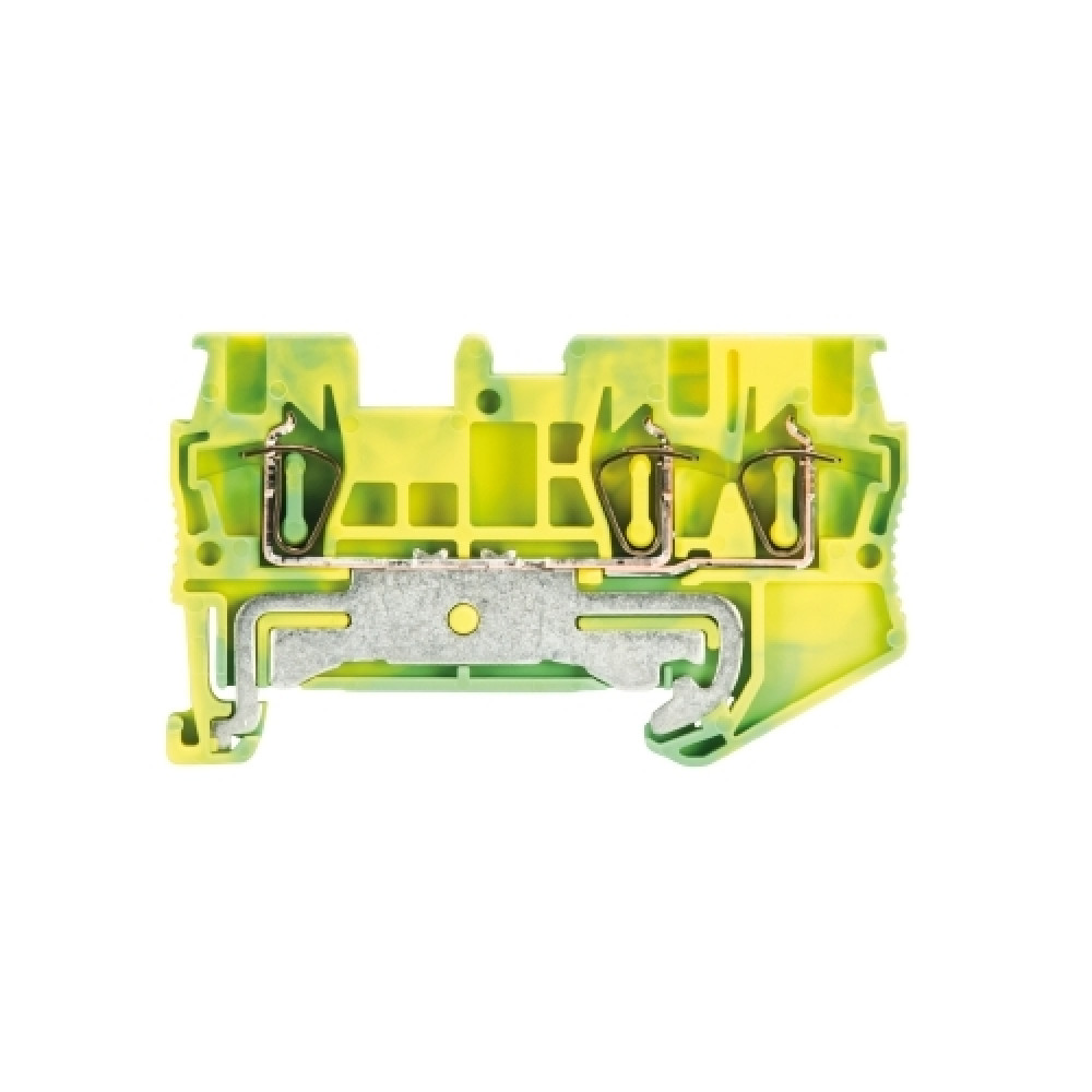 Заземляющая клемма, 3 точки подключения, тип фиксации провода: пружинный, номинальное сечение: 1,5 мм кв., ширина: 4,2 мм, цвет: желто-зеленый, тип монтажа: DIN35