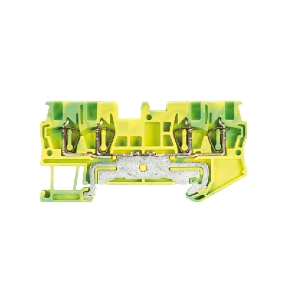 Заземляющая клемма, 4 точки подключения, тип фиксации провода: пружинный, номинальное сечение: 1,5 мм кв., ширина: 4,2 мм, цвет: желто-зеленый, тип монтажа: DIN35