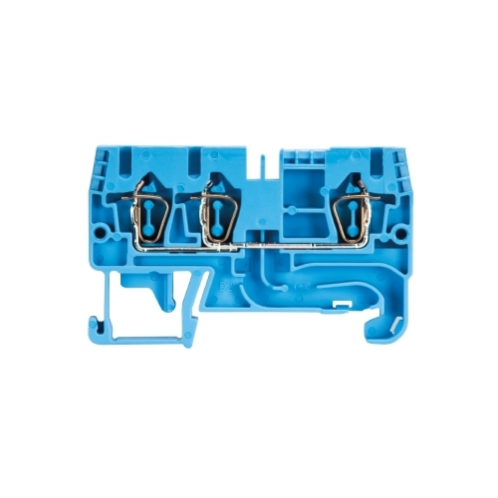 Проходная клемма, 3 точки подключения, тип фиксации провода: пружинный, номинальное сечение: 2,5 мм кв., 24А, 800V, ширина: 5 мм, цвет: синий, тип монтажа: DIN35