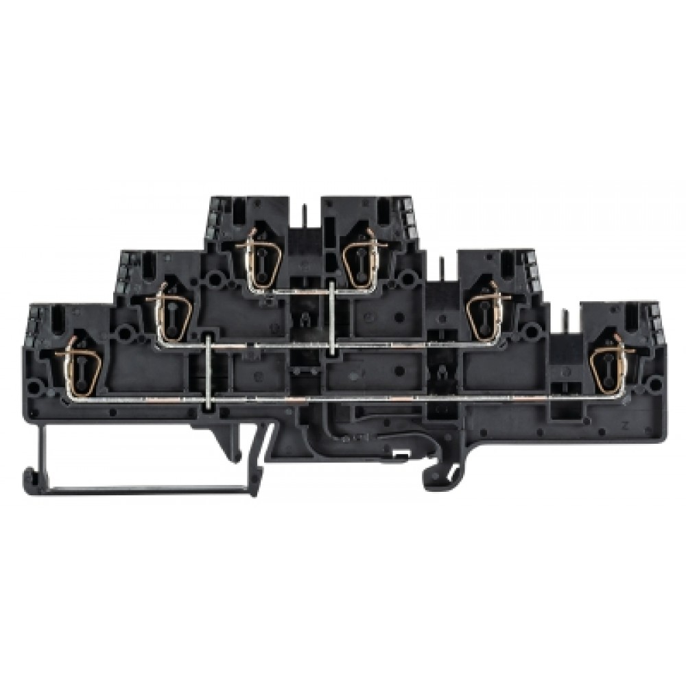 Этажная клемма, 3 этажа, тип фиксации провода: пружинный, номинальное сечение: 2,5 мм кв., 20A, 500V, ширина: 5 мм, цвет: черный, тип монтажа: DIN35