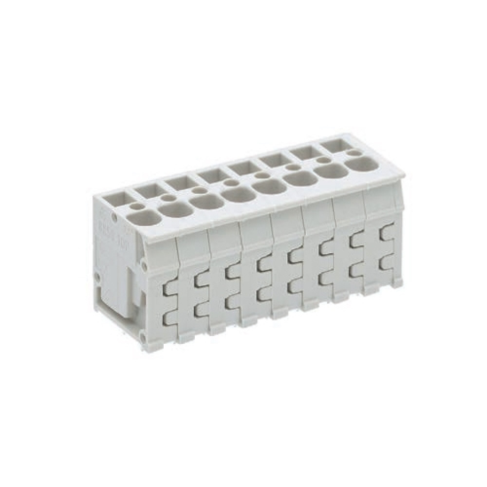 Клемма 8158/8 TOP V OB, Клемма вертикальный подвод кабеля, на плату, шаг: 5.0 мм, 8 полюсов, фиксация провода пружинная, исполнение: без маркировки, 300V, 16А, цвет: серый