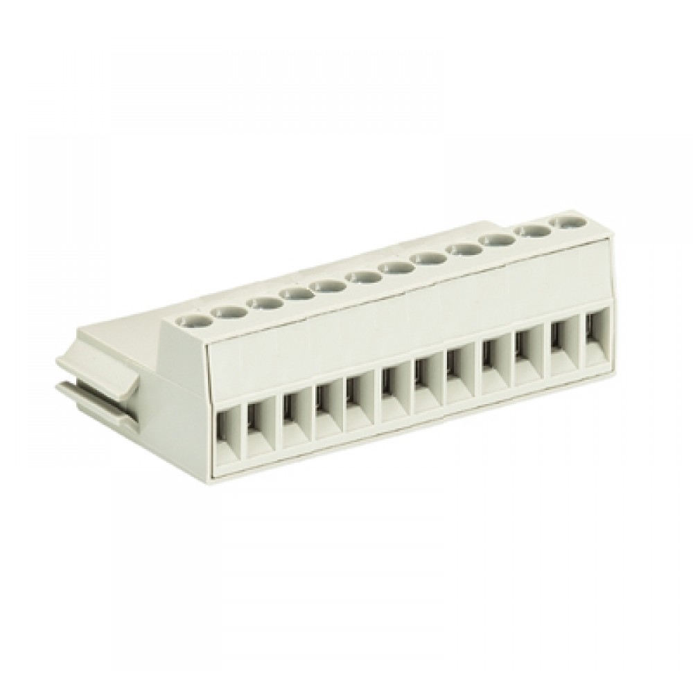 Клемма Wiecon DSTLF85/ 12, Клемма для торцевого подключения к печатной плате, подвод кабеля сбоку, шаг: 3.5 мм, 12 полюсов, фиксация провода винтовая, исполнение: с маркировкой, 125V, 6A цвет: серый