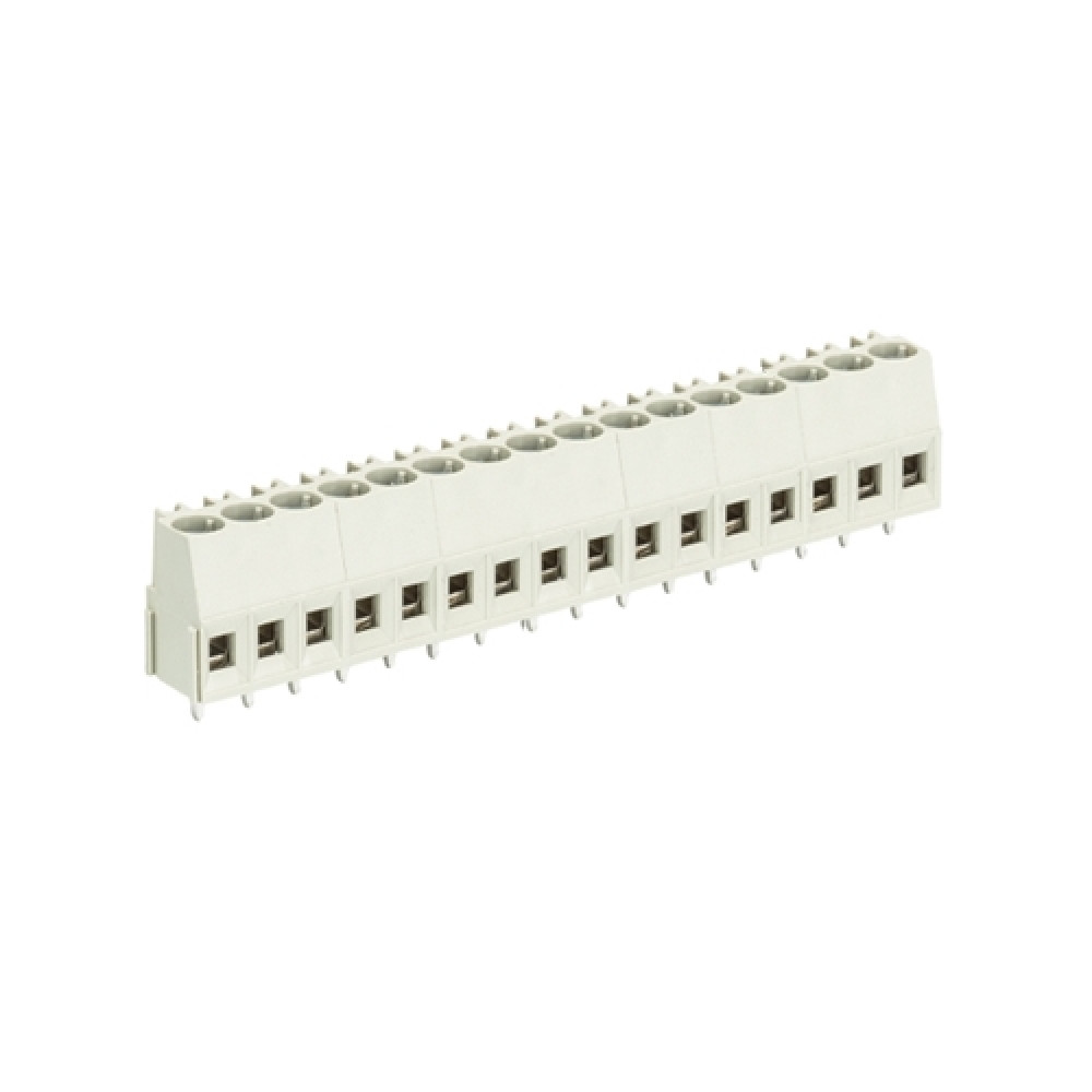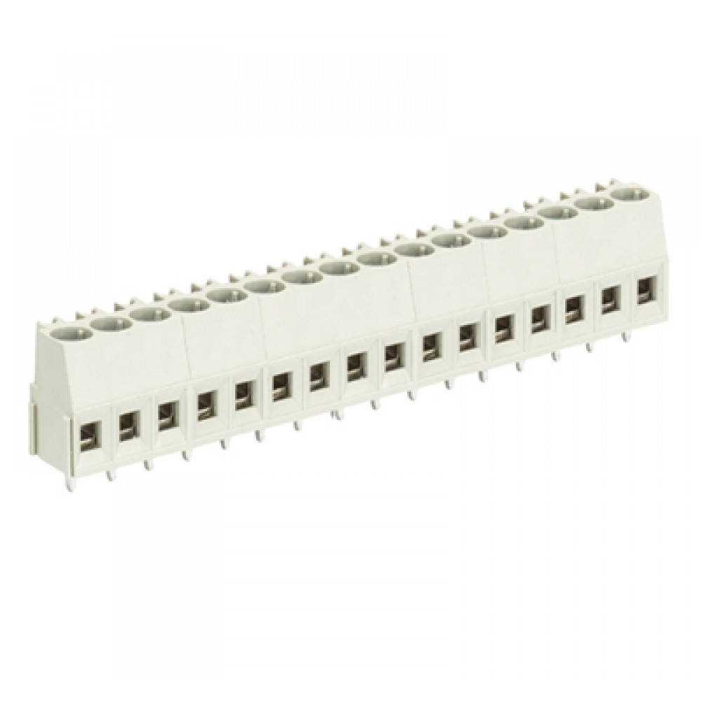 Клемма горизонтальный подвод кабеля, на плату, шаг: 5.0 мм, 16 полюсов, фиксация провода винтовая, исполнение: без маркировки, 300V, 16А, цвет: серый