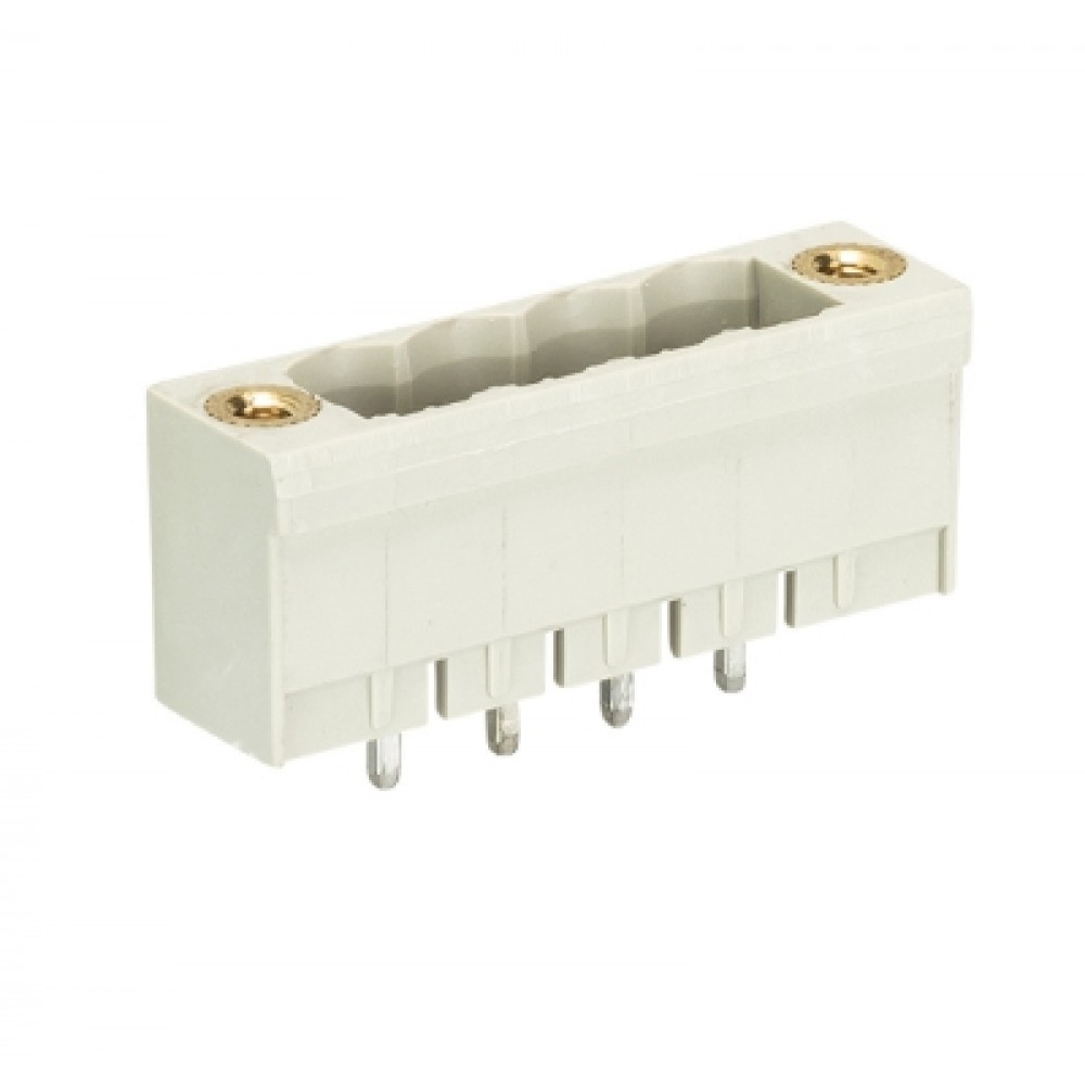 Вилка Wiecon 8113 S / 4 GF OB, Вилочный разъем, вертикальный, на плату, шаг: 5.0 мм, 4 полюса, фиксация на плате пайкой, исполнение: без маркировки, с монтажными фланцами, 300V, 12А, цвет: серый