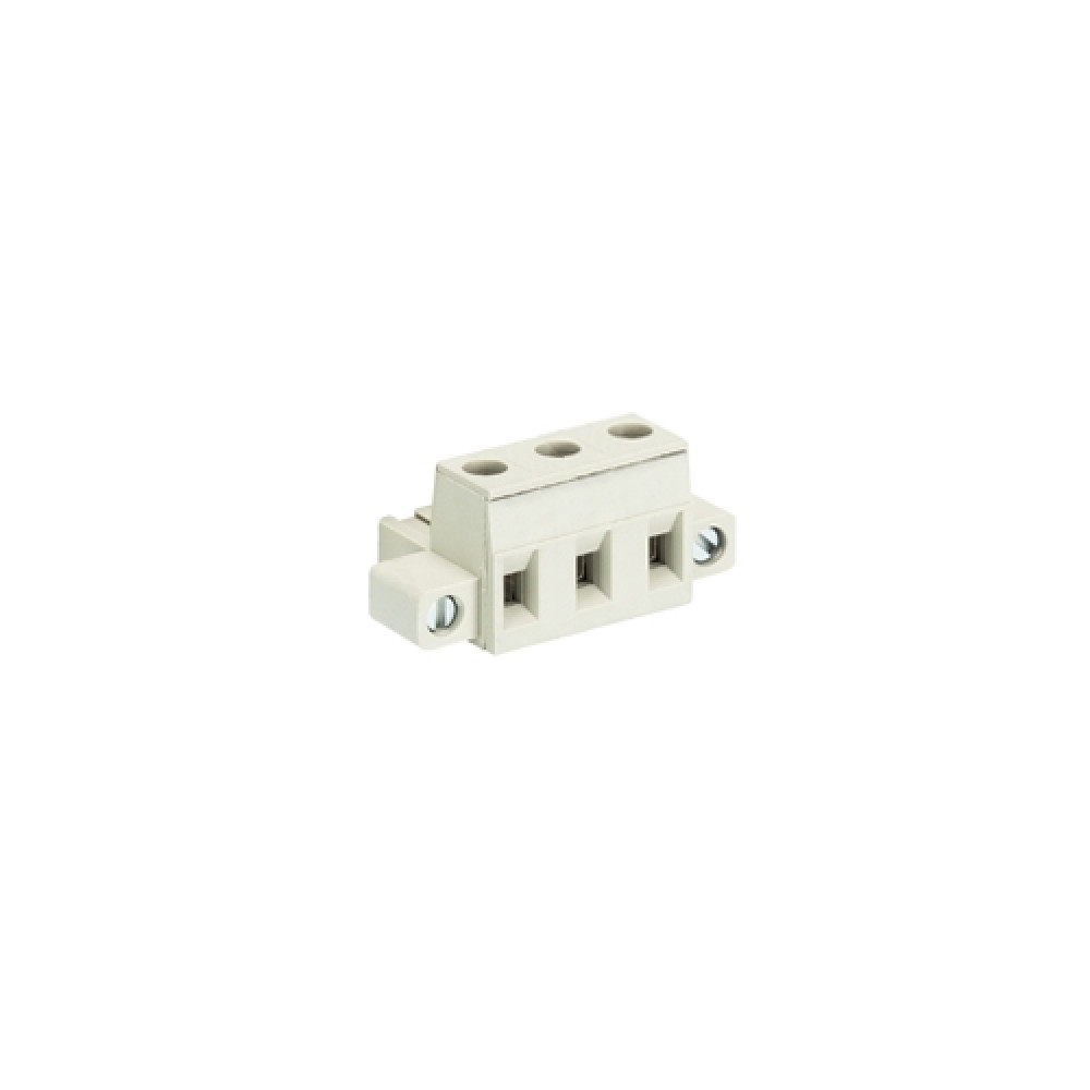 Розеточный разъем, угловой, на кабель, шаг: 7.5 мм, 3 полюса, фиксация провода винтовая, исполнение: с монтажными фланцами, без маркировки, 400V, 12А, цвет: серый