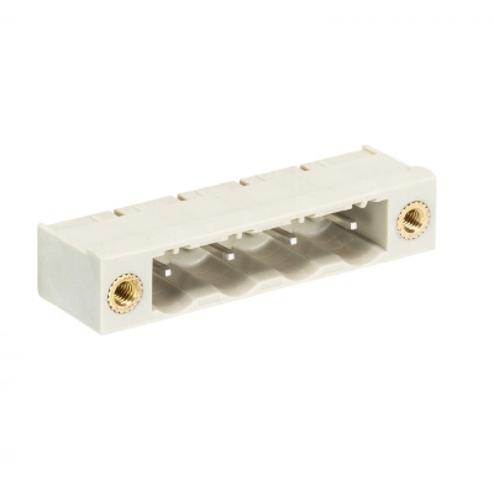 Вилочный разъем на плату 8313 S/4 WF M OB, Вилочный разъем, горизонтальный, на плату, шаг: 7.5 мм, 4 полюса, фиксация на плате пайкой, исполнение: без маркировки, с монтажными фланцами, 690V, 12А, цвет: серый