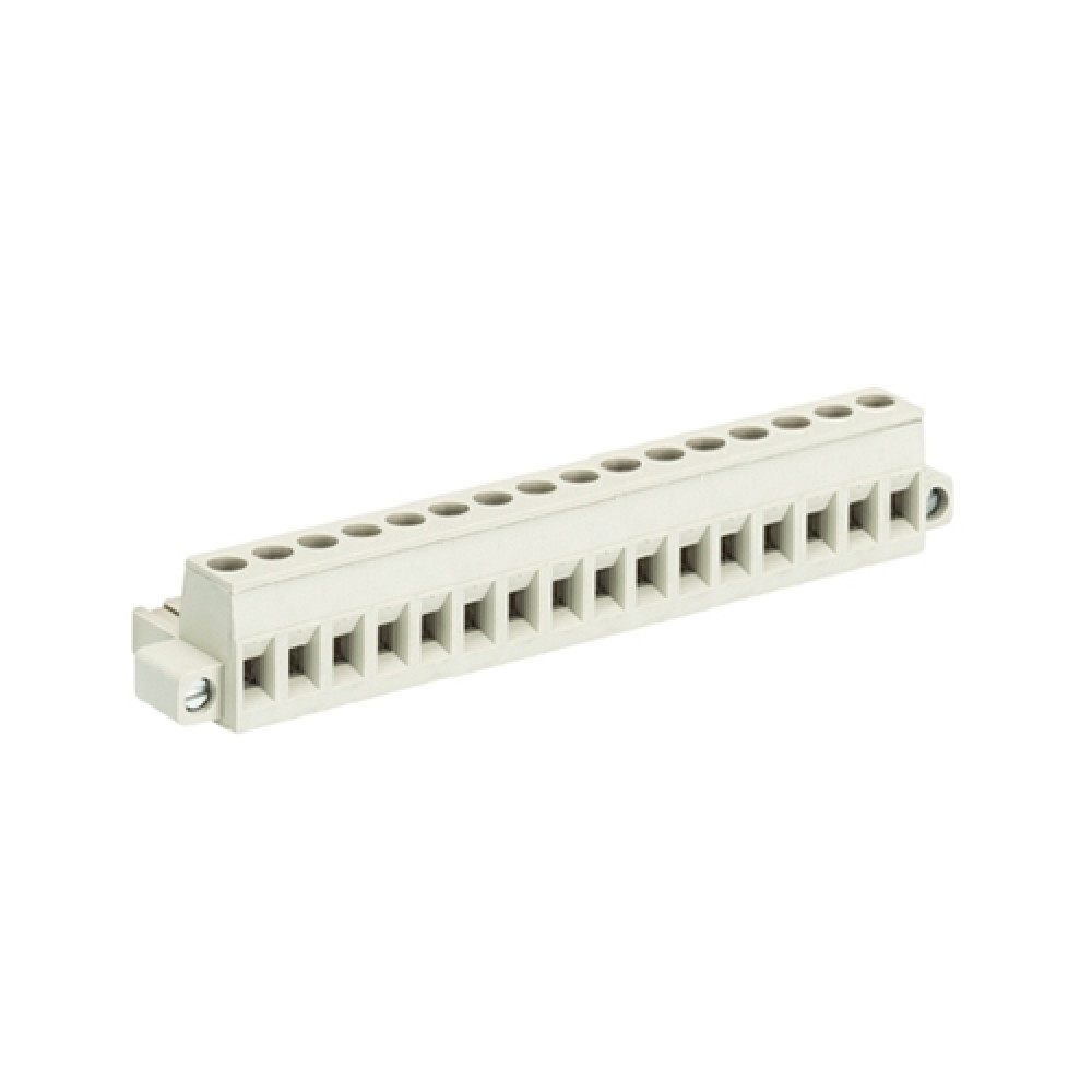 Розеточный разъем, прямой, на кабель, шаг: 5.0 мм, 16 полюсов, фиксация провода винтовая, исполнение: с монтажными фланцами, без маркировки, 400V, 12А, цвет: серый