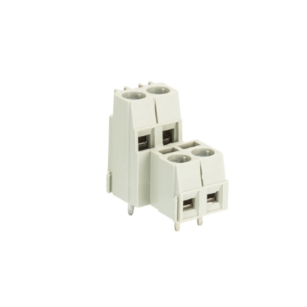 Клемма, 2 этажа, горизонтальный подвод кабеля, на плату, шаг: 5.0 мм, 2 полюса, фиксация провода винтовая, исполнение: без маркировки, 300V, 10A, цвет: серый
