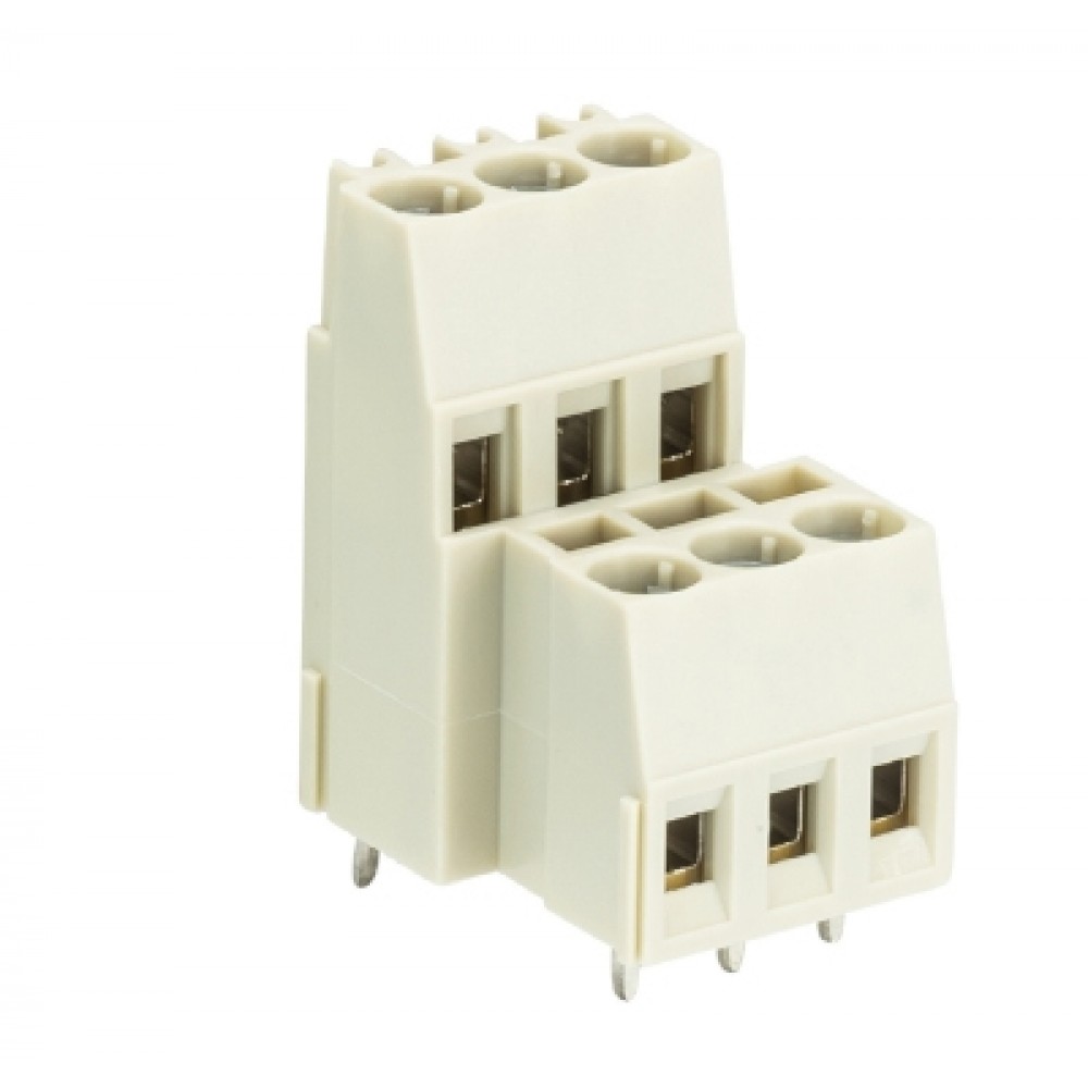 Клемма Wiecon 8191 E / 3 / 6, Клемма, 2 этажа, горизонтальный подвод кабеля, на плату, шаг: 5.0 мм, 6 полюсов, фиксация провода винтовая, исполнение: с маркировкой, 300V, 16А, цвет: серый