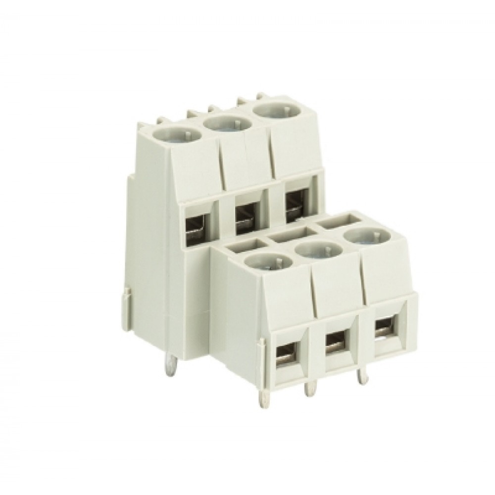 Клемма, 2 этажа, горизонтальный подвод кабеля, на плату, шаг: 5.08 мм, 6 полюсов, фиксация провода винтовая, исполнение: без маркировки, 300V, 10A, цвет: серый