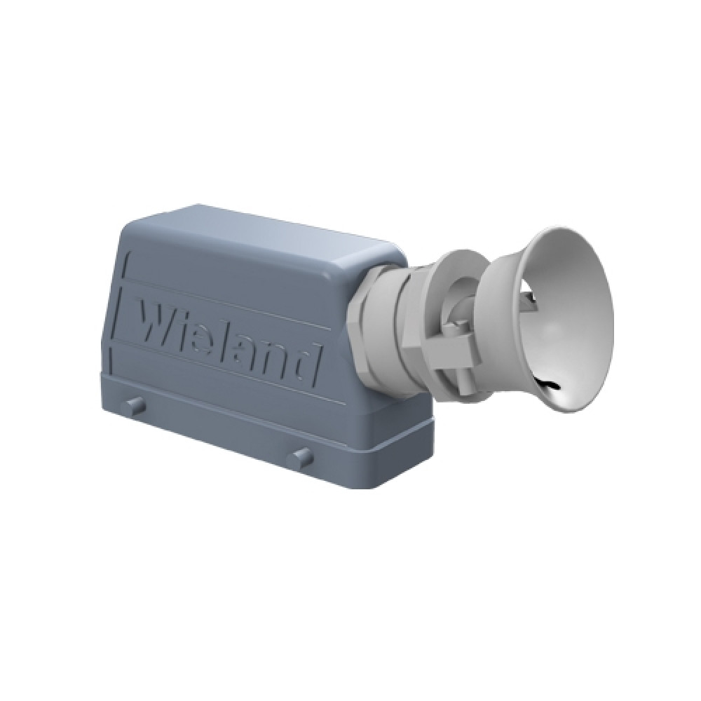 Крышка разъема на кабель, типоразмер 24B, без уплотнителя, 1 кабельный ввод M32x1,5, с разгрузкой на изгиб, IP54, с боковым расположением, без защелок (упоры для двух защелок), материал корпуса: алюминиевый сплав
