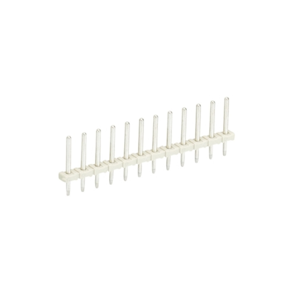 Контакт штыревой 8543 S/12, Штыревой контакт, вертикальный, на плату, диаметр штыря 0,8 мм, шаг 3,5 мм, 12 полюсов, фиксация на плате пайкой, 250V, 6А, цвет: серый, серия 8543