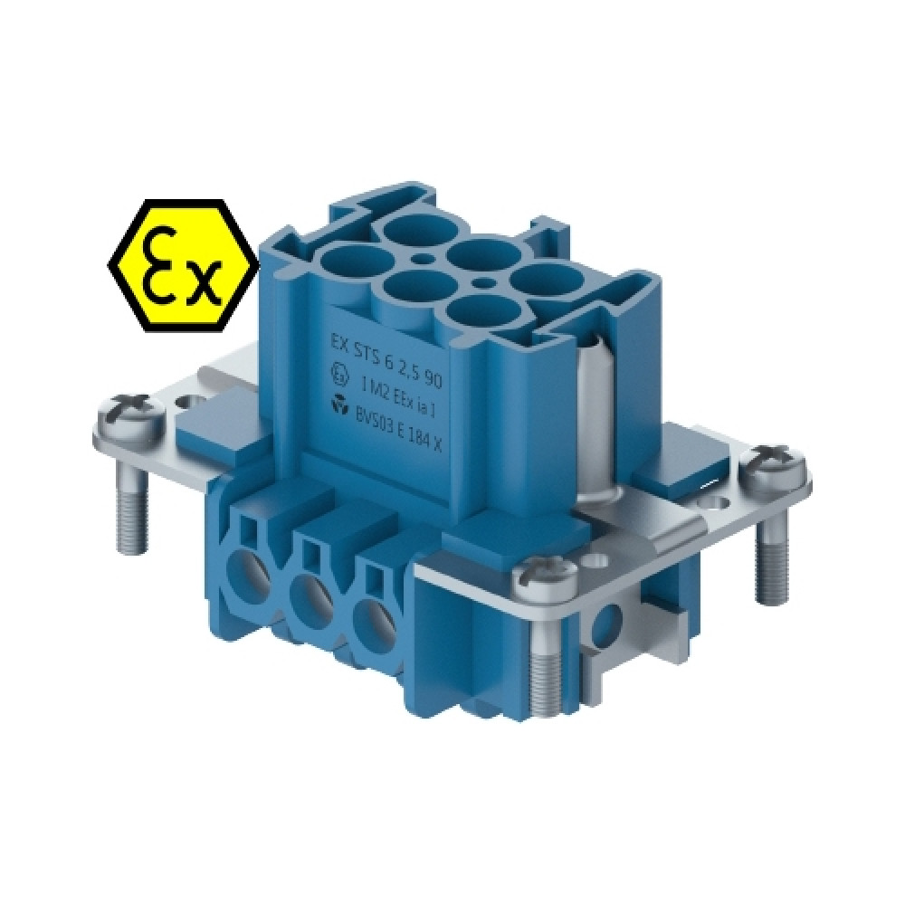 Вилочная контактная вставка EX STS 6 2,5 09IA, Вилочная контактная вставка взрывозащищенного разъема REVOS Ex, Size 6, винтовая фиксация, с защитой провода, 6 полюсов + РЕ, 90 V, до 16 A, материал контактов: медный сплав, тип покрытия контактов: олово