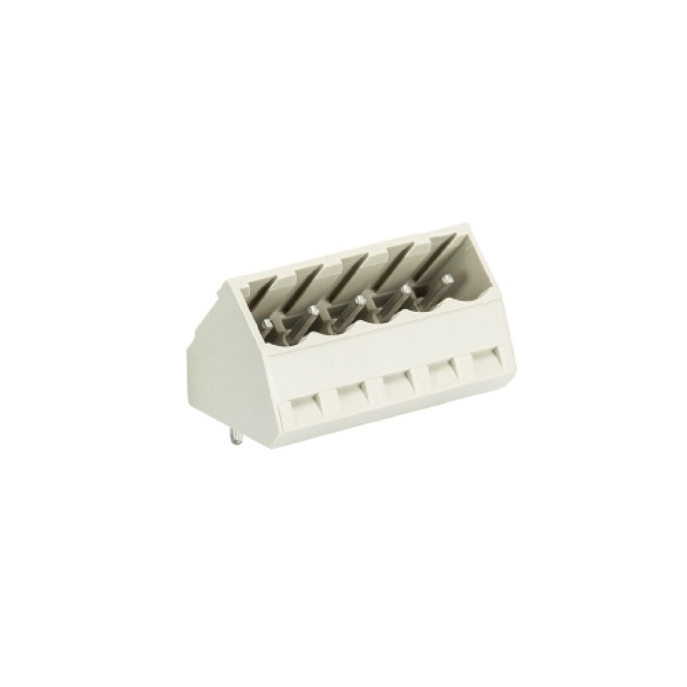 Вилочный разъем на плату 8213 S/5 S OB GR, Вилочный разъем, угол 45 градусов, на плату, шаг: 5.08 мм, 5 полюсов, фиксация на плате пайкой, исполнение: без маркировки, 400V, 12А, цвет: серый