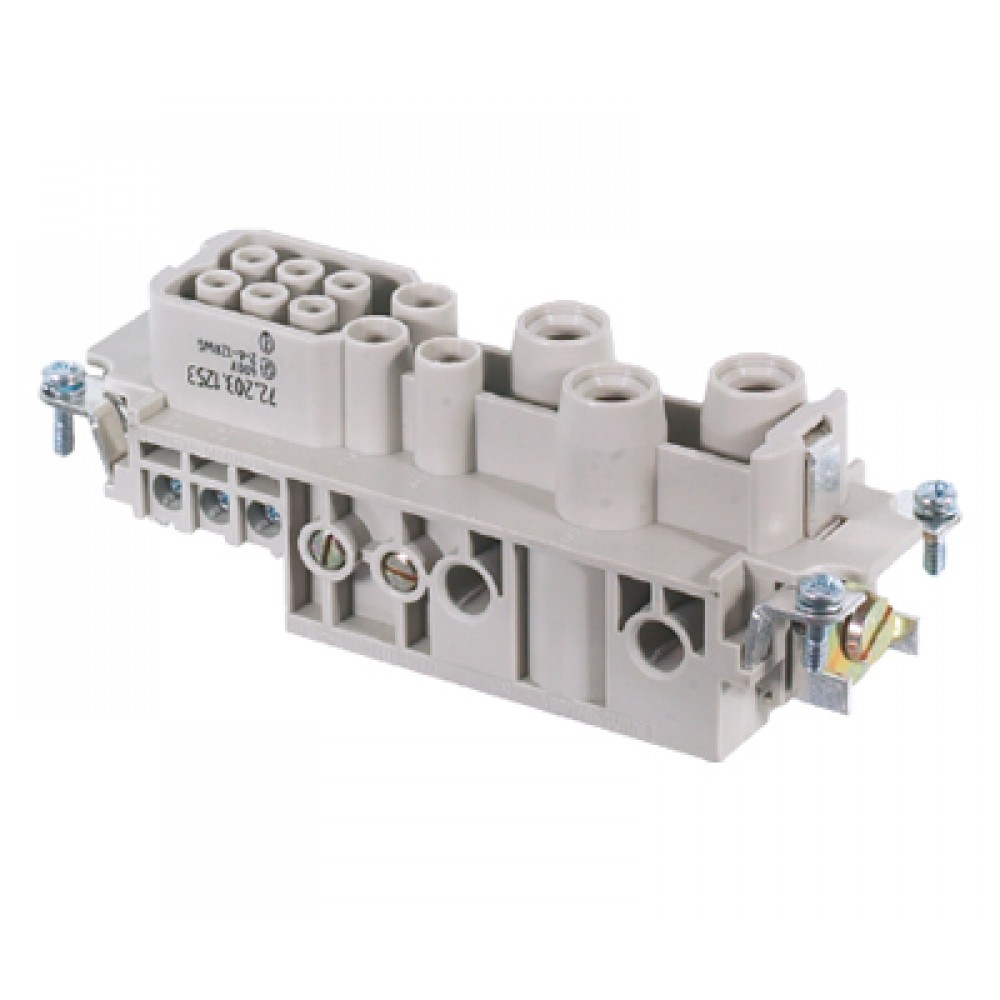 Розеточная контактная вставка 72.203.1253.0, Розеточная контактная вставка, винтовая фиксация, 3/3/6 полюсов + PE, типоразмер 24B, 230/400/690V, 100/40/16A, сечение обслуживаемых проводников 2,5-25 мм кв., тип покрытия контактов: серебро