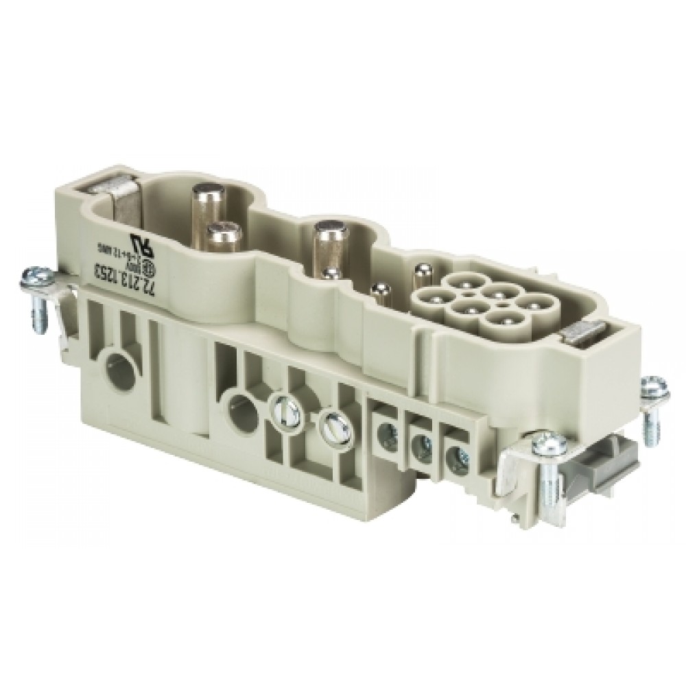 Вилочная контактная вставка 72.213.1253.0, Вилочная контактная вставка, винтовая фиксация, 3/3/6 полюсов + PE, типоразмер 24B, 230/400/690V, 100/40/16A, сечение обслуживаемых проводников 2,5-25 мм кв., тип покрытия контактов: серебро