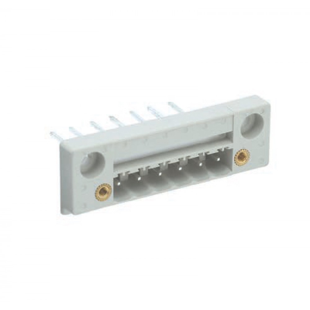 Вилочный разъем, горизонтальный, в панель, шаг: 5.08 мм, 6 полюсов, фиксация на плате пайкой, исполнение: без маркировки, с монтажными фланцами, 400V, 6,5А, цвет: серый