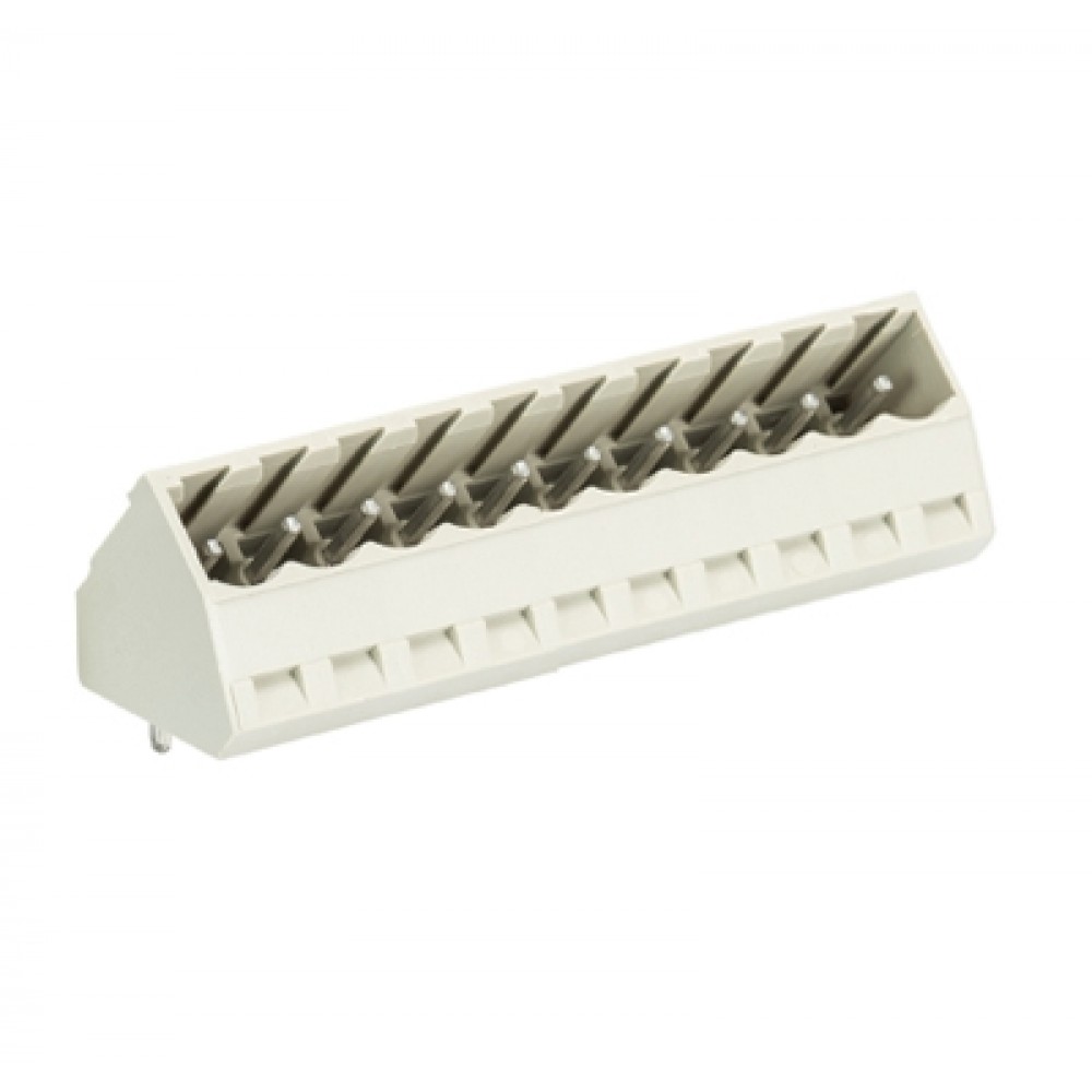 Вилка Wiecon 8113 S / 10 S OB GR, Вилочный разъем, угол 45 градусов, на плату, шаг: 5.0 мм, 10 полюсов, фиксация на плате пайкой, исполнение: без маркировки, 400V, 12А, цвет: серый
