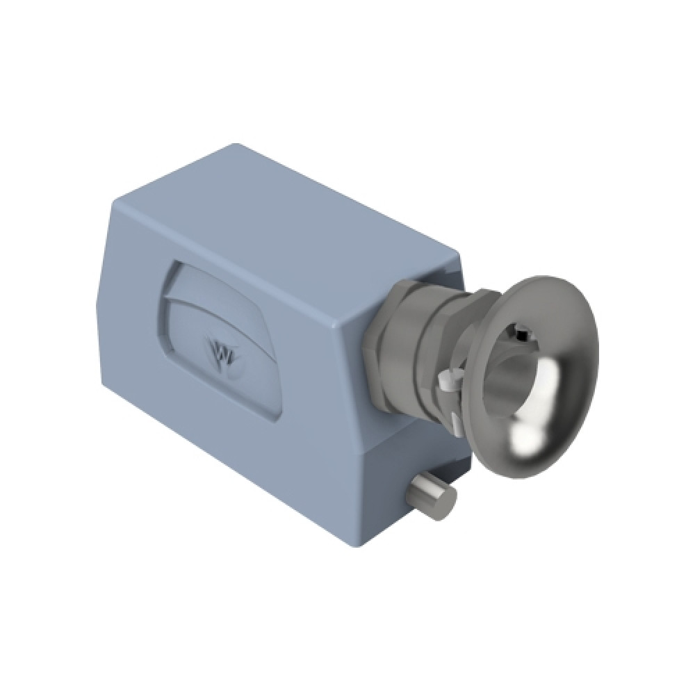 Крышка разъема на кабель, типоразмер 16B, без уплотнителя, 1 отверстие с резьбой для кабельных вводов M25x1,5, с резьбовым удлинителем, с боковым расположением, без защелки (упоры под одну защелку), материал корпуса: алюминиевый сплав