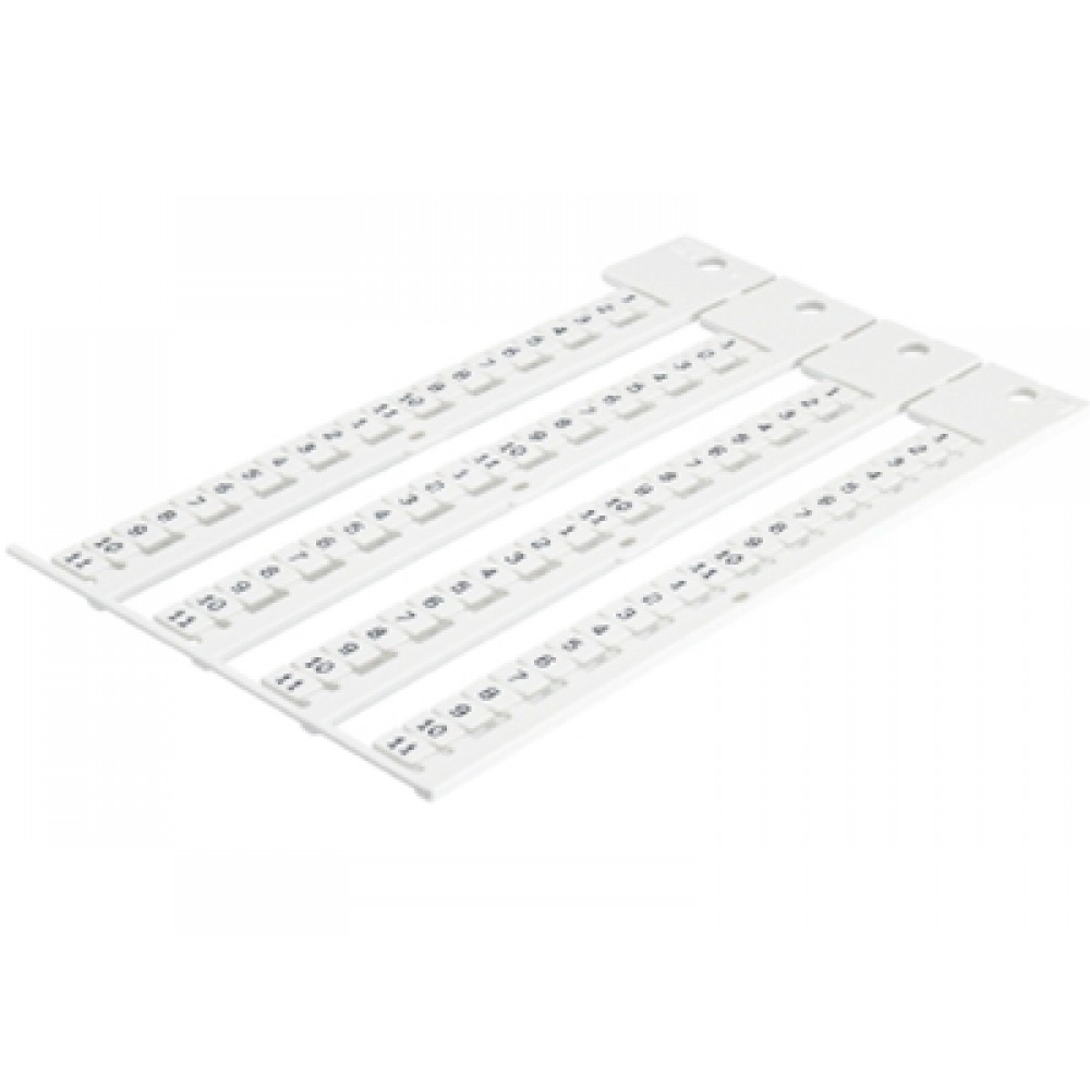 Маркировочные шильдики, для клемм сечением 2,5 мм.кв., боковая / верхняя, 88 шильдиков, нанесенные символы: 1...11, с горизонтальным расположением, размер шильдика: 5,75 x 8,3 мм, цвет: белый