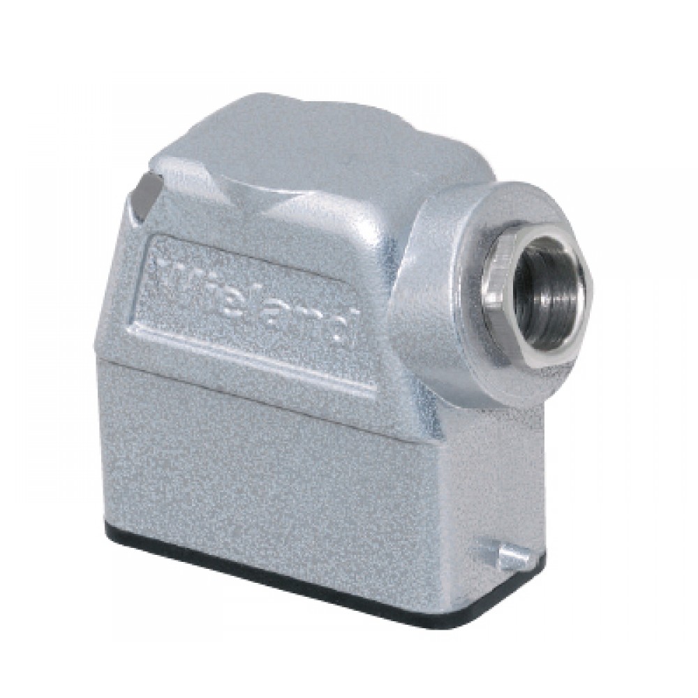Крышка разъема на кабель, типоразмер 10A, с уплотнителем, 1 отверстие с резьбой для кабельных вводов M20x1,5, с резьбовым удлинителем, с боковым расположением, без защелки (упоры под одну защелку), материал корпуса: алюминиевый сплав
