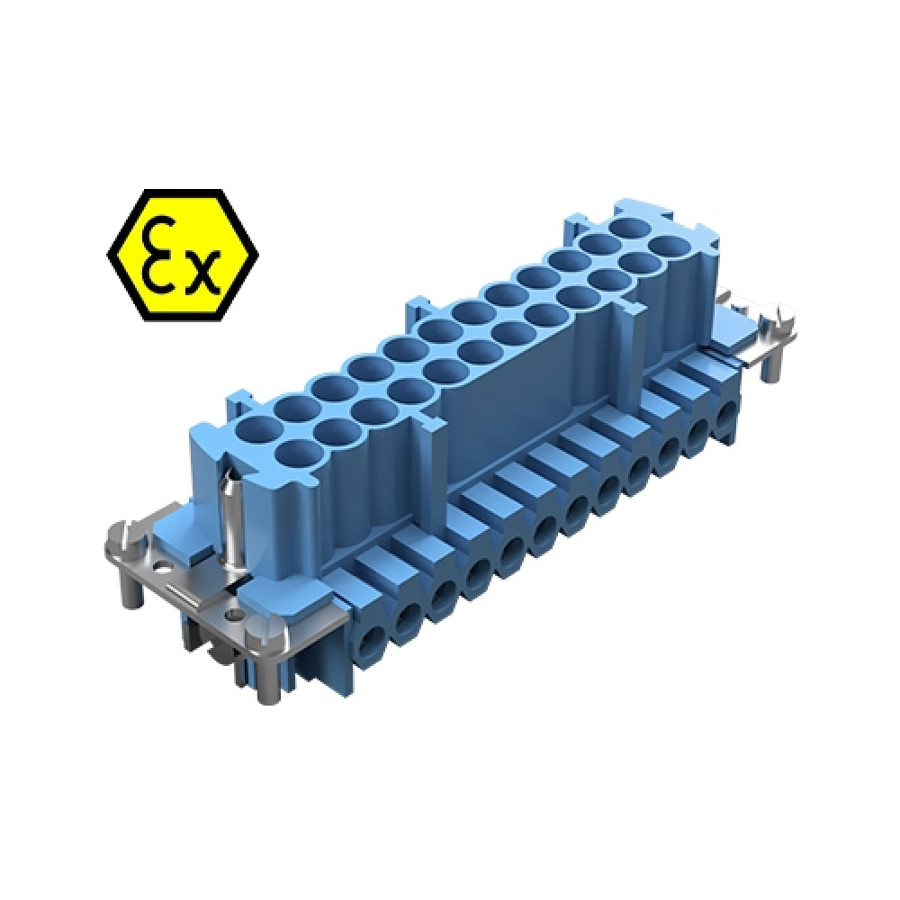 Вилочная контактная вставка взрывозащищенного разъема REVOS Ex, Size 24, винтовая фиксация, с защитой провода, 24 полюсов + РЕ, 90 V, до 16 A, материал контактов: медный сплав, тип покрытия контактов: олово