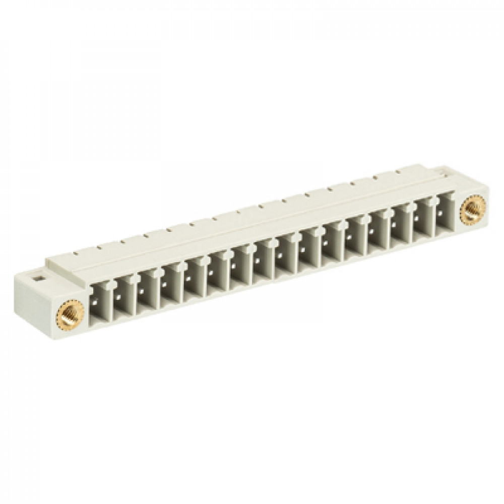 Вилка Wiecon 8513 S / 16 W F, Вилочный разъем, горизонтальный, на плату, шаг: 3.5 мм, 16 полюсов, фиксация на плате пайкой, исполнение: с монтажными фланцами, без маркировки, 250V, 8А, цвет: серый