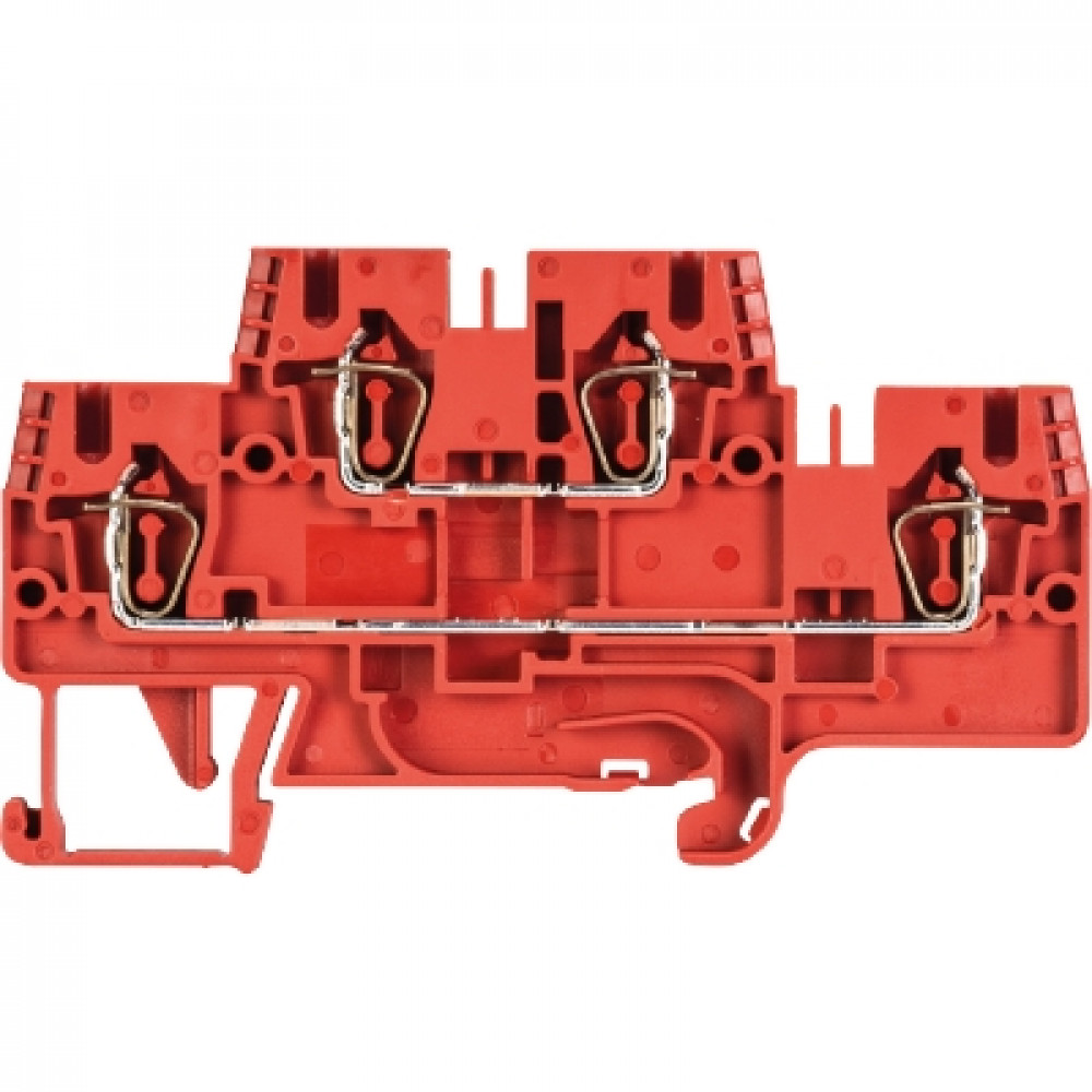 Этажная функциональная клемма, 2 этажа, тип фиксации провода: пружинный, номинальное сечение: 2,5 мм кв., 24A, ширина: 5 мм, цвет: красный, тип монтажа: DIN35