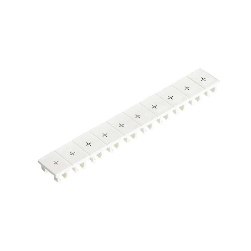 Маркировка для клемм (полоска) 9705A/6/10B +, Маркировочные шильдики, для клемм сечением 4 мм.кв., боковая / верхняя, 10 шильдиков, нанесенные символы: +, с горизонтальным расположением, размер шильдика: 5,75 x 8,3 мм, цвет: белый