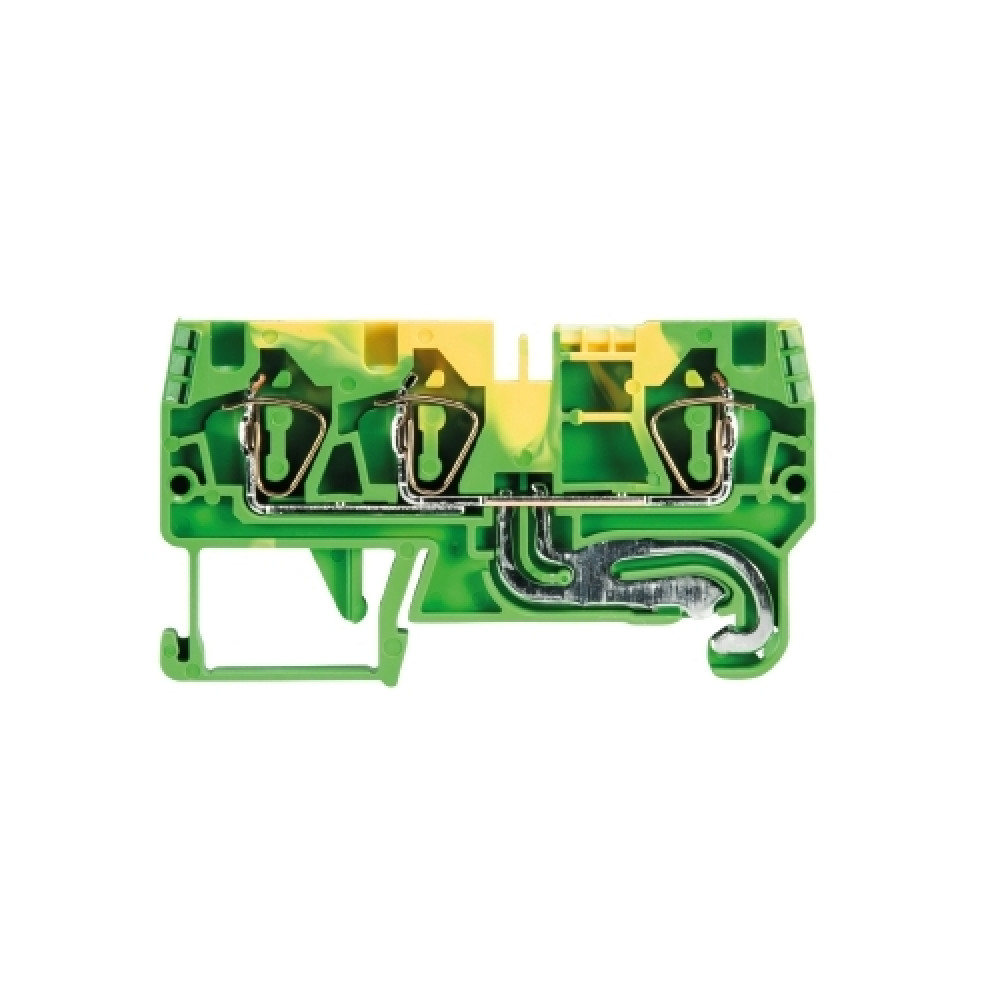 Заземляющая клемма, 3 точки подключения, тип фиксации провода: пружинный, номинальное сечение: 4 мм кв., ширина: 6,2 мм, цвет: желто-зеленый, тип монтажа: DIN35